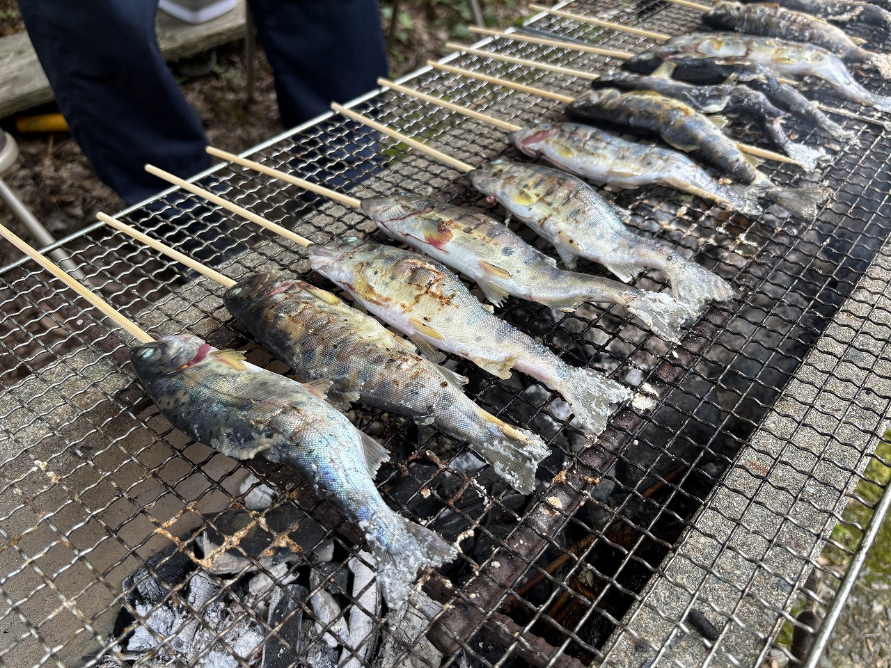 釣り竿・餌セットは300円で利用でき、初心者でもお子様でも大丈夫。釣れたヤマメは持ち帰る(300円/匹)か、その場で塩焼き(500円/匹)にしてもらいましょう。定食を注文すれば、ヤマメの甘露煮や南蛮漬けも食べられます。大自然に囲まれて釣り&食事を満喫!アウトドア好きにはたまらない最高の休日が過ごせますよ。